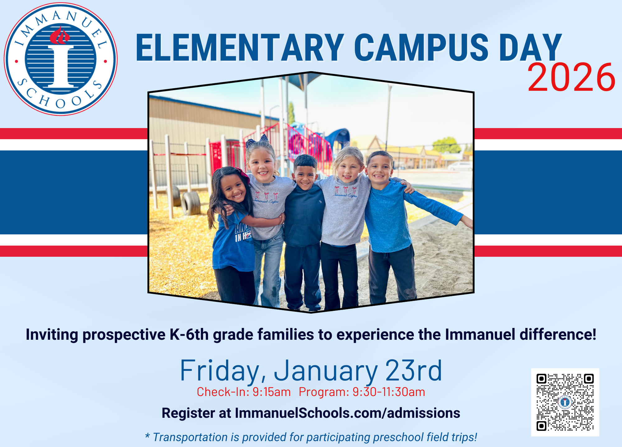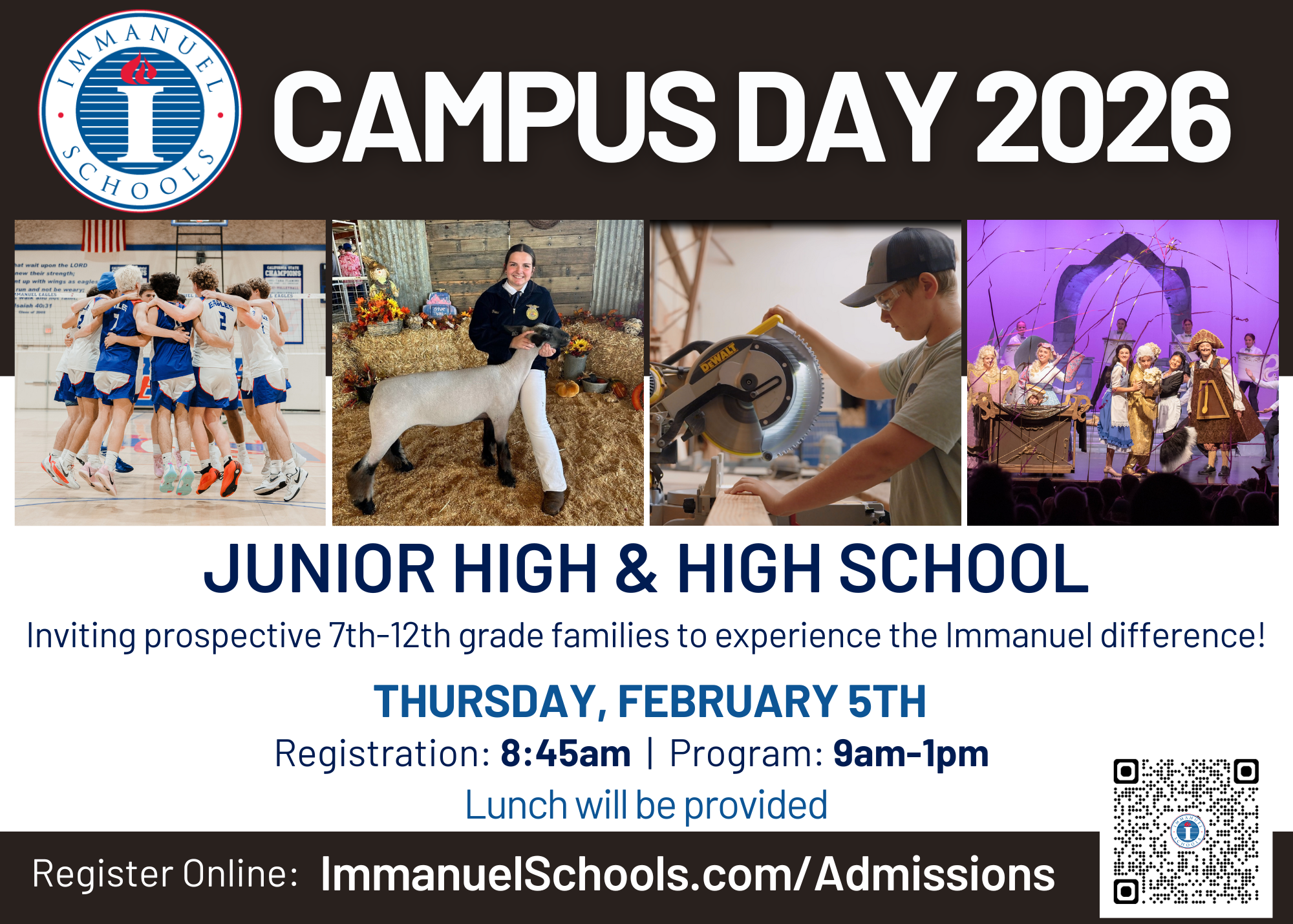 Guests will participate with classes in session, experience chapel, learn about all of our academic and co-curricular programs, and learn about the heart and vision of Immanuel Schools!